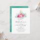 Convite Rosa e Mint Floral Primeira Comunhão Santa