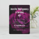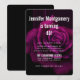 Convite de aniversário com imagem aproximada de uma rosa magenta roxa de aparência gótica. Um estilo sombrio e misterioso.