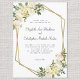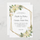 O Convite Elegante apresenta rosas românticas de casamento em branco de baunilha, com pistas de rosa-pincelado mostradas em verde-folha num fundo branco nítido. Uma imagem geométrica em forma de cristal de cor cintilante de ouro cintilante completa a design de tendência, enquanto a formulação clássica tradicional proporciona sofisticação do eterno. Personalize a design do casamento com seus detalhes em cinzas elegantes e roteiro. A parte de trás do cartão é um branco elegante e nítido. Pode entrar em contato comigo em invitationsuites@gmail.com se tiver perguntas sobre este ou qualquer dos nossos designs.