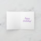 Honra uma mulher especial com esta elegante e feminina 100ª carta de aniversário. Começa com o 100º escrito em um texto roxo em negrito. Happy está escrito em texto curvo acima e aniversário abaixo. Três linhas de texto personalizado são fornecidas abaixo para que você possa personalizar facilmente seu desejo de aniversário. Um pequeno coração roxo divide o texto. Uma moldura de ouro chico envolve o texto de aniversário. Grandes rosas roxas cercadas por folhagem verde-sábio decoram a armação. A design elegante chama a atenção para a importância desta ocasião especial. A dentro do cartão é branca com Feliz Aniversário escrito à direita. Isso também pode ser editado. Este cartão de aniversário de 100 anos faz parte da coleção 100 Birthday Violette. Contém itens para facilitar a sua 100ª celebração de aniversário. Você deve ver um link para ele nesta página. Se você não vir o link ou precisar de ajuda com um item, entre em contato comigo.