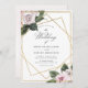 Convide seus convidados de casamento em estilo com este elegante convite de casamento floral apresentando um quadro geométrico de ouro, acentuado por rosas pintados à mão de cor de água rosa e mauve com verde. Personalize todos os detalhes do seu casamento em uma simples tipografia de cinzas escuras. A parte traseira da placa tem uma lavagem com aquarela correspondente. Os melhores votos para o seu casamento e casamento! Projetada por Susan Coffey.
