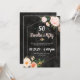 Um convite floral sofisticado e lindo com rosas cor-de-rosa em aquarela e um fundo escuro com detalhes dourados. Personalize para qualquer evento: festas de aniversário, chá de noiva, jantares de ensaio e muito mais.