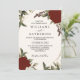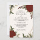 Rosas vermelhas negras românticas com folhas e coroa botânica de ouro armado. Convite para casamento floral com elegante quadro de ouro com rosas vermelhas e folhas em ouro e verde. Um casamento no inverno perfeito ou convite para casamento de novo ano em cores profundas. Entre em contato comigo para obter ajuda sobre a personalização ou se você precisar de outro produto com este design.
