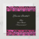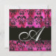 Convite ROSA FÚCSIA PRETO TECIDO DAMASCO MONOGRAMA ,Dourad