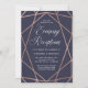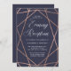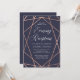 Este convite de casamento da na moda da noite apresenta um falso rosa de ouro, design geométrico num fundo azul da meia-noite.