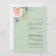 Um fundo verde sábio. Decorados com ouro-rosa e folhas de eucalipto cor-de-rosa-esbranquiçada, flores de rosa e cor-de-rosa-esbranquiçada, galhos, verde-verde e um cinzeiro de ouro falso. Personalize e adicione o nome da noiva a ser e os detalhes da festa.