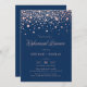 Celebre a noiva e o noivo com um pouco de brilho! O convite para janto de ensaio moderno e elegante apresenta pontos falsos de confete rosa de ouro com fundo azul marinho. Perfeito para qualquer tema de janto de ensaio.