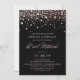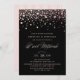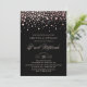 Convide familiares e amigos com este convite personalizável do B'não Mitzvah. Ele apresenta pontos de confete de ouro rosa-claro e branco e caligrafia branca sobre fundo preto. Personalize adicionando os detalhes do evento. Este rosa dourado B'not Mitzvah está disponível em outras cores e estoque de papelão.