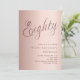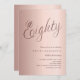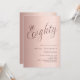 Um convite moderno e na moda para uma festa de aniversário 80. fundo de gradiente rosa dourado e a palavra Oitenta escrita com letras elegantes e grandes em rosa dourado escuro. Personalize e adicione um nome e detalhes da parte.