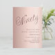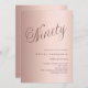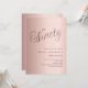 Um convite moderno e na moda para uma festa de aniversário 90. fundo de gradiente rosa dourado e a palavra Ninety escrita com letras elegantes grandes de guião em ouro rosa escuro. Personalize e adicione um nome e detalhes da parte.