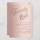 Um convite moderno e na moda para uma festa aniversário de 21 anos. fundo de gradiente rosa dourado e a palavra 21 escrita com letras elegantes e grandes em ouro rosa escuro. Personalize e adicione um nome e detalhes da parte.