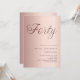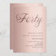 Um convite moderno e na moda para uma festa aniversário de 40 anos. fundo de gradiente rosa dourado e a palavra quarenta escrita com letras elegantes e grandes em rosa dourado escuro. Personalize e adicione um nome e detalhes da parte.