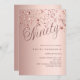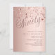 Um convite moderno e na moda para uma festa de aniversário 90. fundo de gradiente rosa dourado e a palavra Ninety escrita com letras elegantes grandes de guião em ouro rosa escuro. Decorado com estrelas rosa douradas. Personalize e adicione um nome e detalhes da parte.