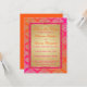 Este vibrante cartão de "save the date" para casamento inspirado em Sari indiano oriental em tons de rosa quente, fúcsia e laranja tem um padrão dourado de damasco com uma borda rosa com brilho FAUX (IMPRESSO, NÃO REAL). As cores ricas tornam-no perfeito para um casamento étnico, casamento muçulmano ou casamento indiano oriental. ****POR FAVOR, OBSERVE que nenhum dos elementos deste convite é elevado ou em relevo. Tudo é impresso plano. Este convite seria perfeito para uma cerimônia de casamento indiano, hindu, sânscrito ou muçulmano na primavera, verão, outono ou inverno, festa de noivado, aniversário ou outra festa de casamento. Além disso, se você redimensionar o convite, ou se você alterar as fontes, ou o tamanho da fonte, parte do design e/ou texto pode ser cortado. Tudo será impresso como você vê no seu monitor. Eu não verei seu convite, e a Zazzle NÃO irá corrigir nada (erros de digitação, alinhamento, etc.). O texto e o papel são totalmente personalizáveis. Se você precisar de ajuda com este convite, por favor me envie um e-mail ANTES de fazer o seu pedido. Se você precisar de outros itens correspondentes ou gostaria de ter outros elementos de design