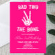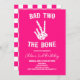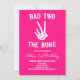 Este é um Convite de festas de segundo aniversário de esqueleto ósseo, rosa quente, dois ruins!