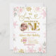 Garota primeiro aniversario de inverno muito divertida, Floral de inverno cor-de-rosa está virando um convite de aniversário, flocos de neve, primeiro aniversario de Natal