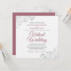 Estes belos convites são feitos especialmente para casais que decidiram trazer suas celebrações de casamento online. Possui um elegante design quadrado com rosa poeirento e texto de cinza e caracóis florais de cinza prateada e espirais em fundo branco. Só porque a pandemia forçou você a repensar a celebração, não significa que você não pode ter lindas iniciações.