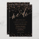 Este maravilhoso convite de casamento mostra discos de brilho rosa de ouro em fundo preto. Para personalização mais avançada deste design, por exemplo, alteração do layout, da fonte ou do tamanho do texto, clique no botão "PERSONALIZAR" acima. Por favor, entre em contato comigo para qualquer pergunta!