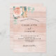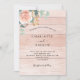 madeira de rosa como fundo. Decorados com ouro-rosa e folhas de eucalipto cor-de-rosa-esbranquiçada, flores de rosa e cor-de-rosa-esbranquiçada, galhos, verde-verde e um cinzeiro de ouro falso. Personalize e adicione seus nomes e detalhes do casamento.