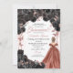 Convite de Aniversário para Quinceanera Floral, Dourada Elegante, Negra e Rosa