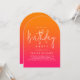 Celebre seu aniversário em estilo ousado e bonito! Este convite de aniversário personalizado faz exatamente isso com cores brilhantes, laranja e cor-de-rosa-quente, gradiente misturado com texto moderno branco e um sotaque escrito à mão que soletra a palavra "aniversário" em estilo fabuloso. As cores se assemelham a um nascer do sol e ao amanhecer de uma nova era! Esses convites podem ser solicitados em formatos digitais de download impressos e instantâneos.