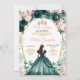 Convite Rosa Quinceañera Emerald Green Crown Floral
