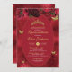 Convite Rosa Red Dourada Luxury Butterfly Quinceanera