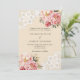 Para um casamento elegante e romântico. Um fundo bege, colorido creme, decorado com flores, rosas e rendas de ouro rosa e rosa. Personalize e adicione seus nomes e detalhes.