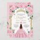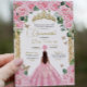 Todo o texto pode ser editado para qualquer ocasião. Rosas rosa, floral rosa, rosa elegante, rosa elegante e quinceanera de ouro, marmelo rosa, convite de aniversário floral cor-de-rosa.