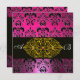 Convite ROSA ROXO PRETO DAMASCO MONOGRAMA ,dourado