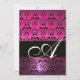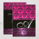 Convite ROSA ROXO PRETO DAMASCO MONOGRAMA, fúcsia branco