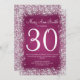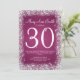 Design elegante do convite de festas do aniversário de 30 anos com motivo cor-de-rosa Sparkling sofisticado do brilho, nome e data feita sob encomenda e texto adicional. Imprima seus família e amigos com este design à moda e moderno. Inteiramente customizável! Fácil de usar e fácil personalizar.