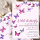 Este bonito rosa A Little Butterfly Está No Caminho O convite para o brunch chá de fraldas seria a adição perfeita para a sua celebração. Apresentando borboletas roxas e cor-de-rosa, é uma maneira fofa de convidar seus convidados para um brunch especial para receber sua menina. Personalize editando para adicionar suas informações na lista. Veja os outros elementos coordenadores do meu compro verificando a pequena coleção de borboletas.