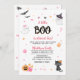 Rapariga Halloween Um Pequeno Convite De Chá de fraldas De Fantasma Boo Apresentando nosso Encantado Convite De Chá de fraldas Tema De Halloween, onde abóboras adoráveis, chapéus de bruxas caprichosas, fantasmas amigáveis, poções mágicas, e um borrão de lua e estrelas se juntam para criar uma celebração inesquecível!
