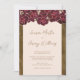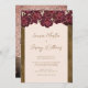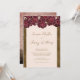 Este elegante convite para noivados florais apresenta uma fronteira de rosas burgundy sobre um fundo cor-de-rosa pincelado, junto com ouro escuro. Personalize seus detalhes no roteiro de caligrafia moderno. A parte de trás da inovação tem uma pintura artística moderna de um vaso de rosas com seu momograma personalizado. Desenhada pela artista Susan Coffey.