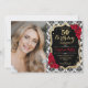 Convite Rosa vermelha Black White Damask Foto 50th Birthda