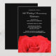 Um convite de celebração de 50º aniversário de casamento com uma rosa vermelha em preto.