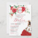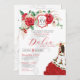 Convite Rosa vermelha Floral Crest Elegante Charra Quincea