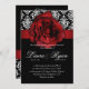 Convite Rosa vermelha Negra Damask Elegante