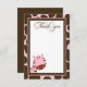 Este chá de fraldas de aniversário ou cartões de agradecimentos de aniversário da na moda de 3,5x5 tem um padrão de girafa castanho-rosa e cor-de-rosa suave e escuro com uma estrutura marrom, rosa e branca no meio. No fundo, há uma cabeça de zebra fofa a espreitar à esquina. No topo, obrigado está escrito em uma fonte cursiva de tendência marrom. Alguns design são de STOCKBERRY STUDIO.