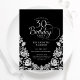 Convite de festas aniversário de 30 anos elegante prata preta. Design clássico com rosas, folha prateada falsa e letra de script de tipografia. A Trendy convida o cartão perfeito para uma festa de na moda. Personalize com seus próprios detalhes. Pode ser personalizado para qualquer idade. Impressos convites Zazzle ou modelo de impressão digital instantânea para download.