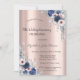 Convite Rosas Azuis Brilho Gotas Rosa Antigo Aniversário