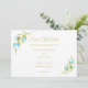 Rosas Azuis Casamento Salvar A Data. Estes são projetados com um caule de botões de rosa azul água colorida e folhagem.