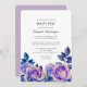 Convite Rosas azuis e roxas. Batismo floral de aquarela