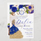 Convite Rosas azuis Floral Western Charro Quinceañera
