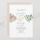 Boho, elegante, moderno, convite de casamento cor-de-rosa com borda floral com coração de corda dourada, rosas de aquarela e simples roteiro de caligrafia.