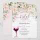 Convite Rosas Boho, Jantar de Noivado em Taça de Vinho