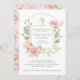 Estes belos e elegantes convites da Primeira Comunhão apresentam um quadro de adoráveis rosas cor-de-água cor rosa com folhas verdes e sotaques de rosa-ouro falsos, e texto de cinza macia sobre um fundo branco limpo para um olhar que consegue ser inspirado tanto na moda como na safra. Há também um olhar de ouro falso. A parte traseira do convite apresenta um quadro floral correspondente em um fundo rosa pálido e suave.