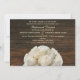 Um convite de janto de ensaio de casamento que apresenta uma imagem de rosas brancas no fundo sobre um fundo de madeira marrom-escura. Personalize o texto com detalhes da sua ocasião.