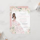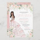 Elegante design de luxo com rosas brancas e rosas cor-de-rosa com pincel suave, sotaques de rosa, e uma bela boneca com um luxuoso vestido de bola voada. Todo texto é totalmente personalizável.